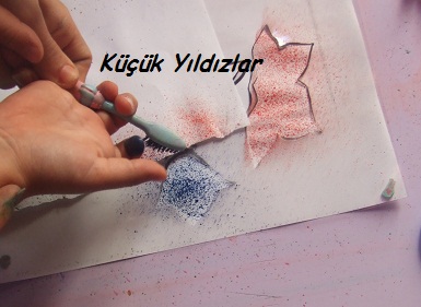 02:00 görsel sanatlar dersinde sınıfımızda sulu boya ve diş fırçası ile püskürtme yaptık.